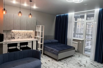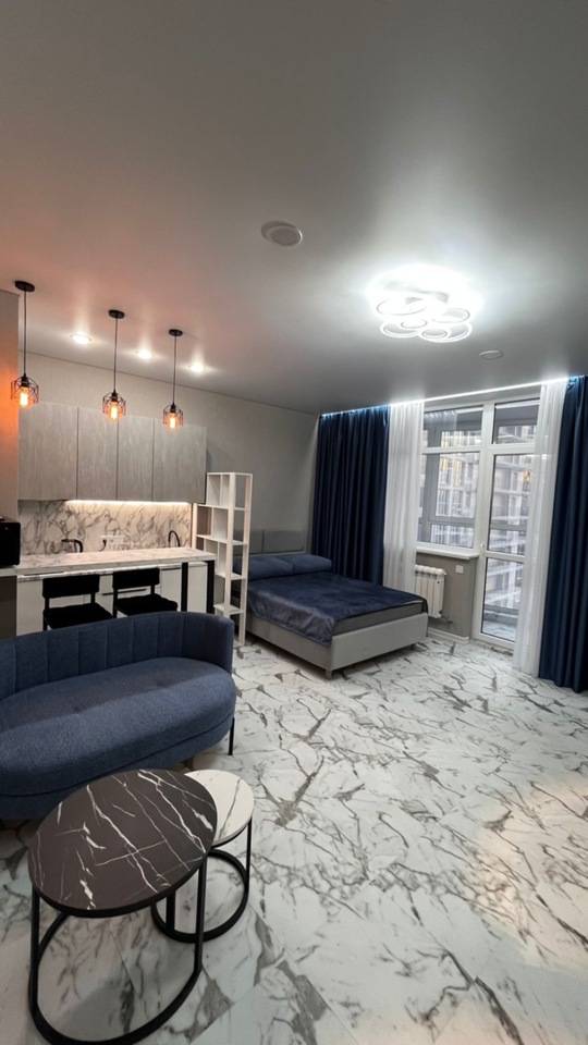 Сдается на длительный срок просторная и уютная студия. Общая площадь 35 м2, жилая 23 м2, площадь кухни 8 м2. 19 этаж 25-этажного дома, кирпичный, построен в 2015 г. Центральное отопление, качественный ремонт, есть лоджия, пассажирский и грузовой лифт, совмещенный санузел. Возможен онлайн-показ. Можно с детьми. Есть охрана. А также холодильник, телевизор, кондиционер, интернет, балкон/лоджия застеклен, стальная дверь, мебель, встроенная мебель, встроенная техника, мебель в комнатах, мебель на кухне, стиральная машина.